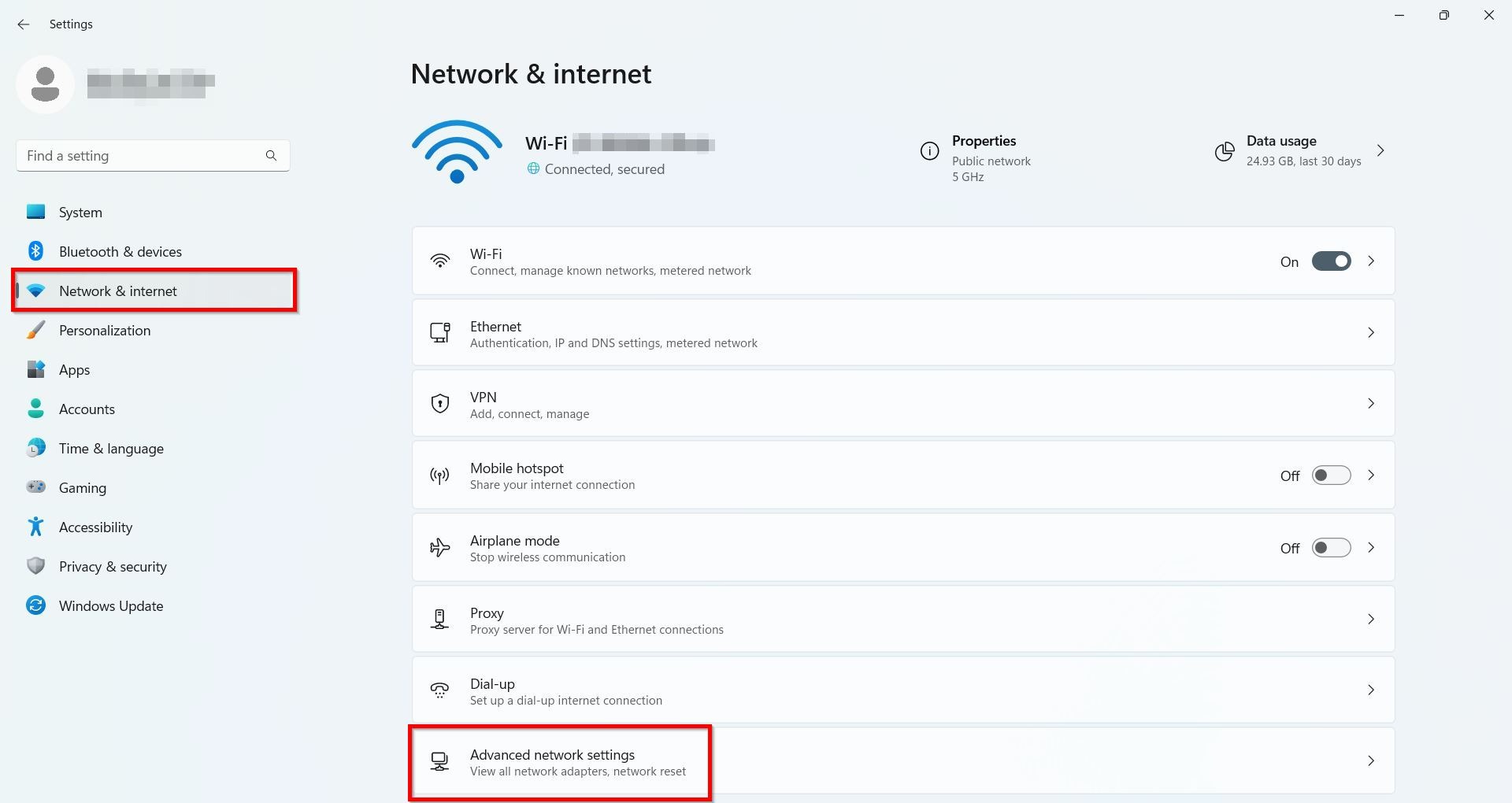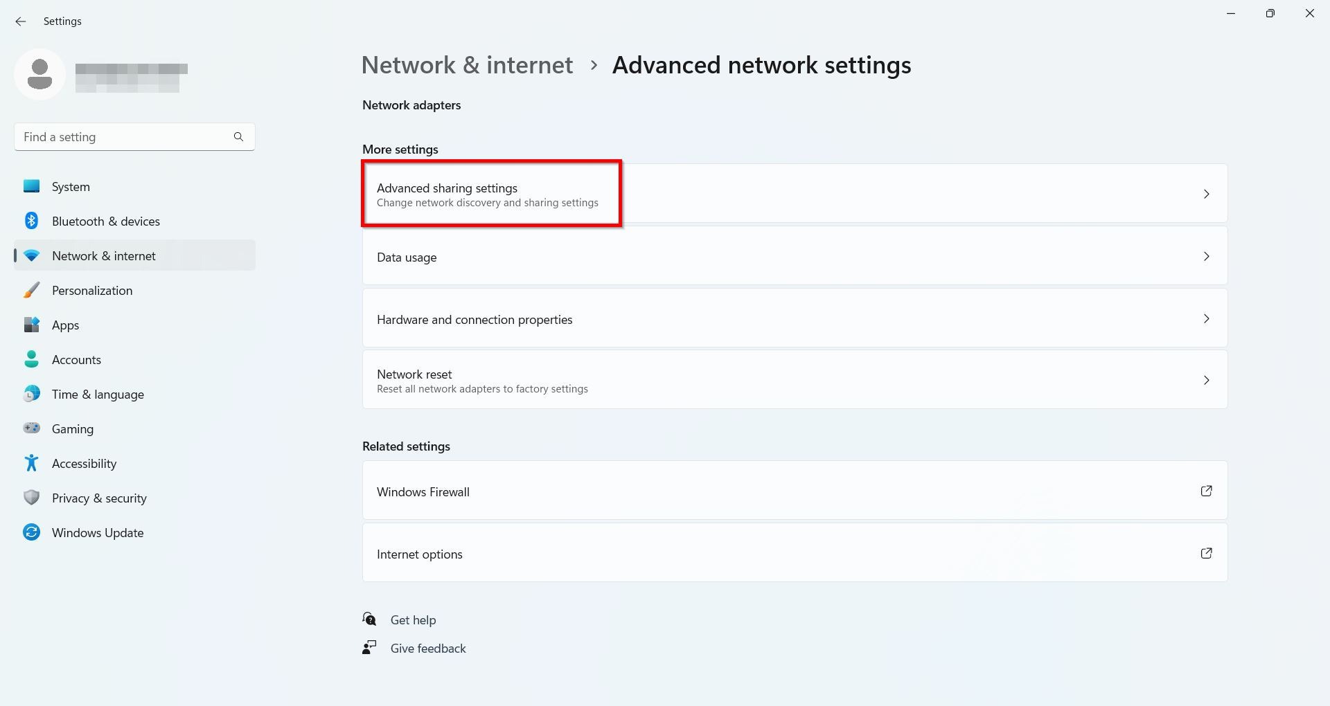 STEP 2 – Navigate to [Network & Internet] – [Advanced network settings].