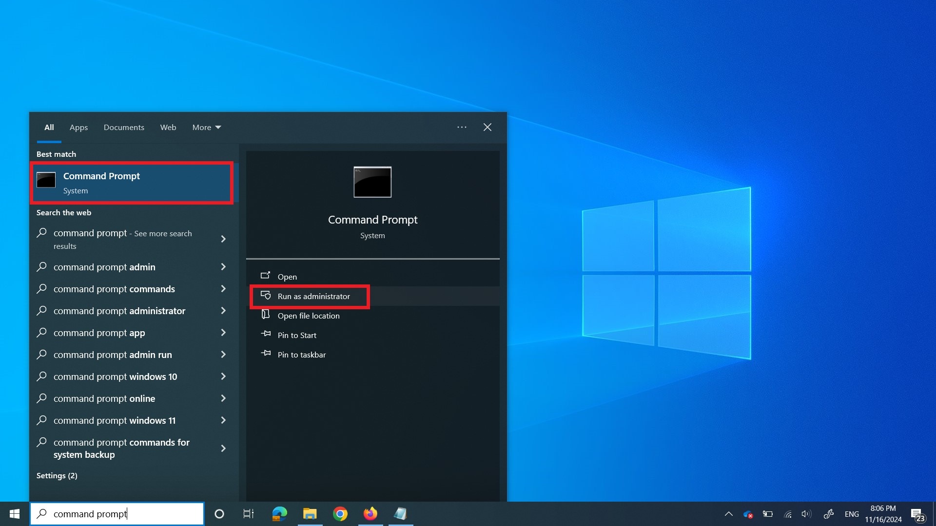 STEP 1 – Click on the window search bar, type [Command Prompt], select the [Command Prompt] and click on [Run As Administrator].