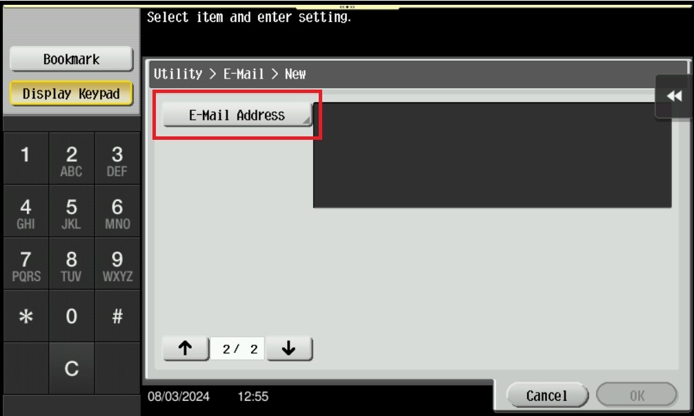 STEP 4 – Key in info according below under email address registration. Once finish key in select [OK] twice to save the setting.