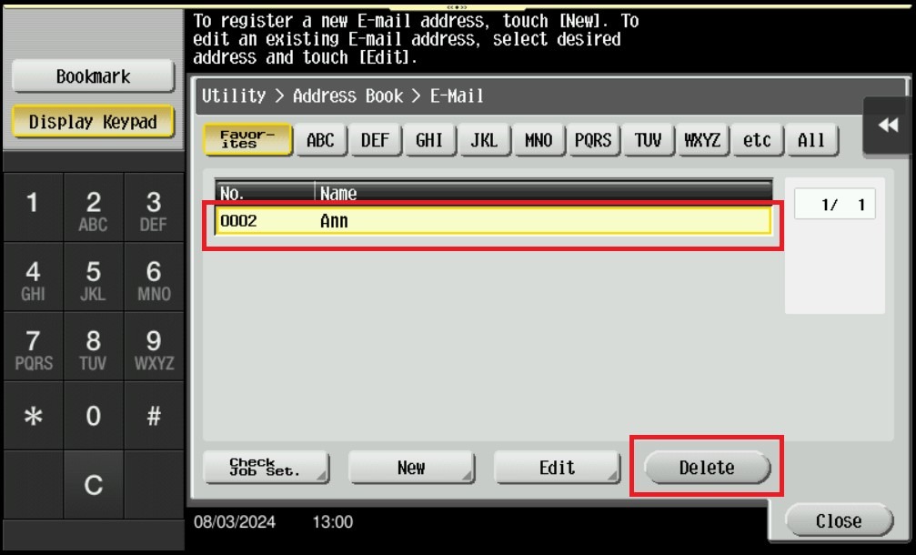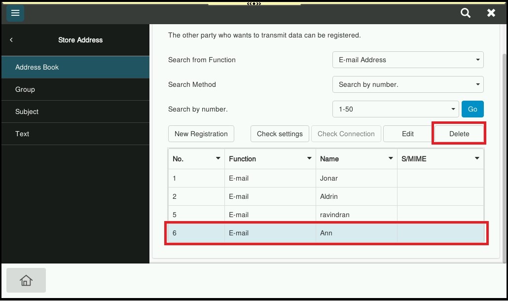 For Delete the Email Address on machine address book