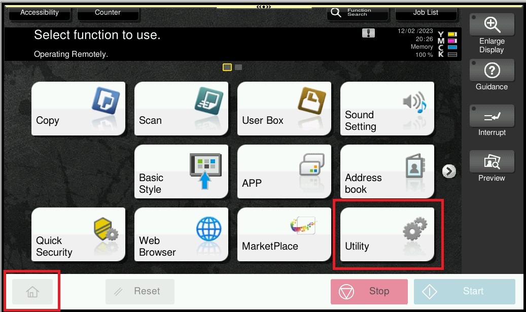 STEP 1 – On the Main Menu Screen, select [Home] – [Utility] – [Utility].