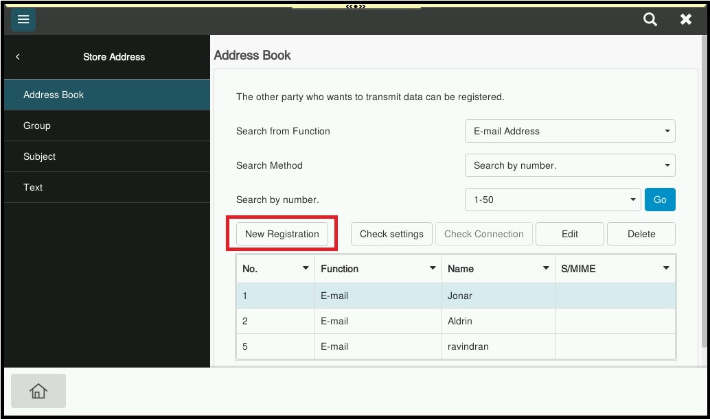 For Adding the Email Address on machine address book