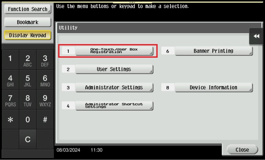 STEP 2 – Select [One-Touch/User Box Registration].
