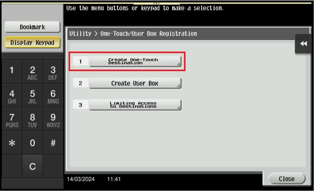 STEP 3 – Select [Create One Touch Destination].