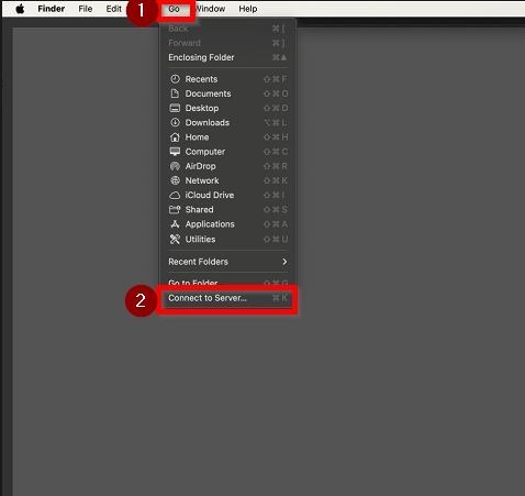 Step 1 – Click on [Go] tab and select [Connect to server].