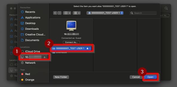 STEP 7 – Select the printer [IP Address] under location, select the [Registered User] and click on [Open].