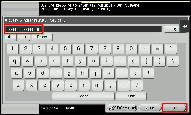 STEP 3 – Key in the default administrator password and click [OK] button.