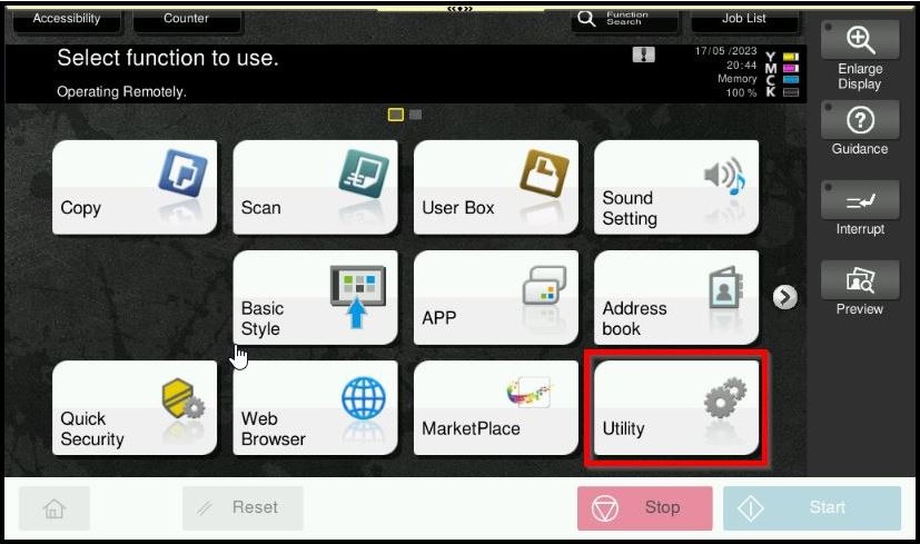 **You may access to web connection via machine IP Address. Click on this to check how to get the IP Address from machine, then key in Konica Minolta Machine IP Address at web browser and log in as admin the Web Connection.
