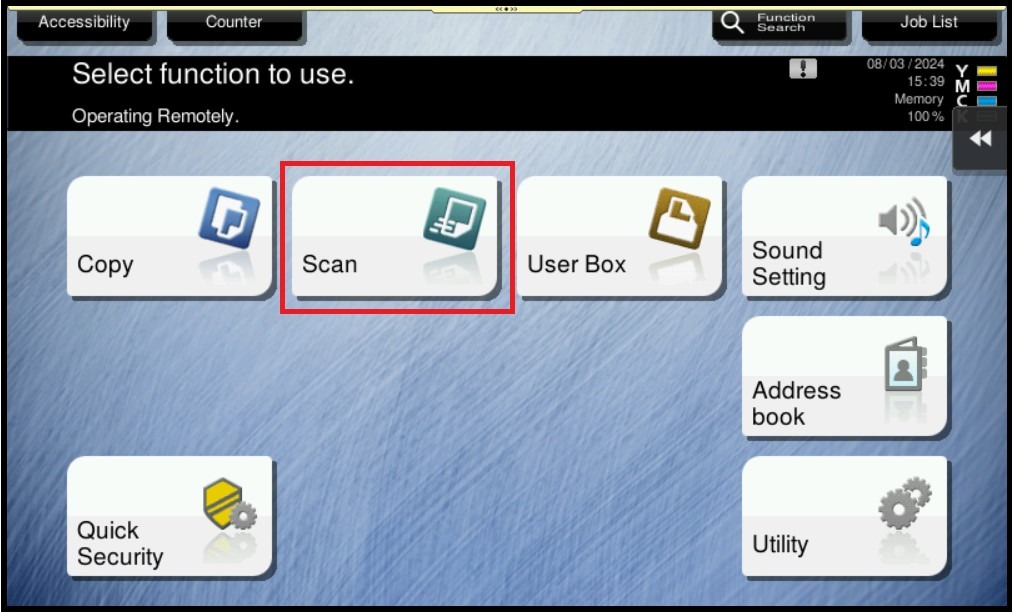 STEP 1 – On the Main Menu Screen, select [Home] – [Scan].