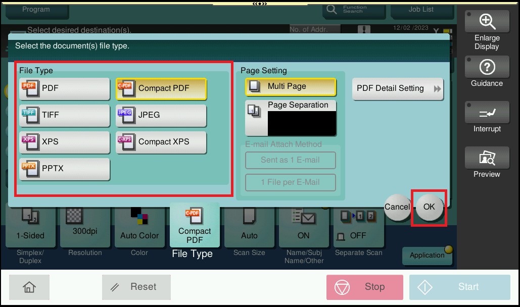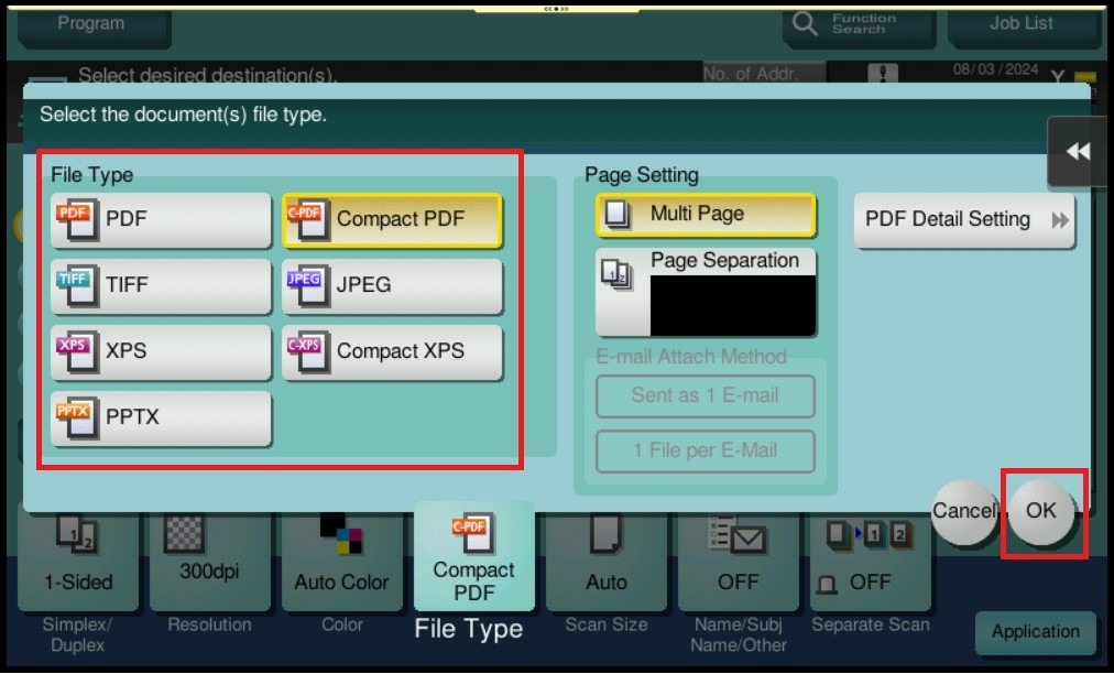 STEP 3 – You may change the file type either on [Compact PDF] or [JPEG], then click [OK] to save the setting.