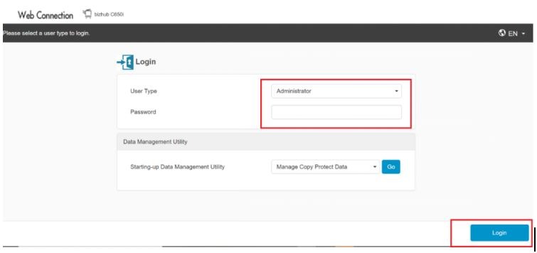 STEP 1 – At the web browser, enter the IP address of the Konica Minolta device. Click Here for the guide on how to get the machine IP Address.