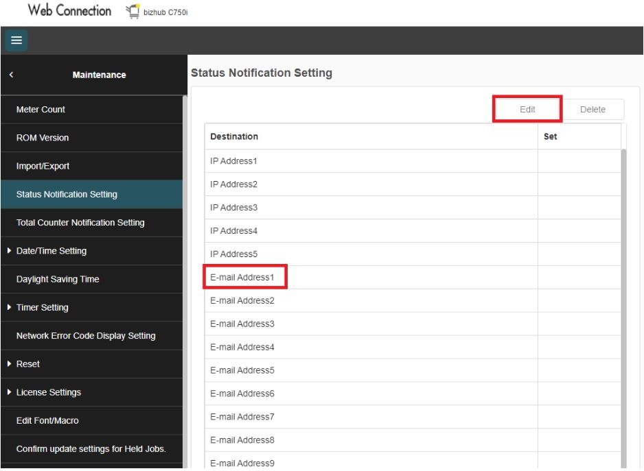 STEP 6 – Select one of the [E-mail Address] then click [Edit].