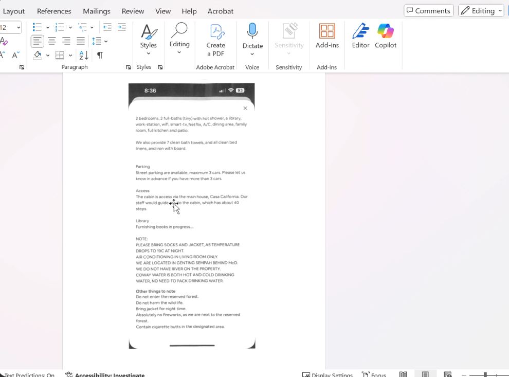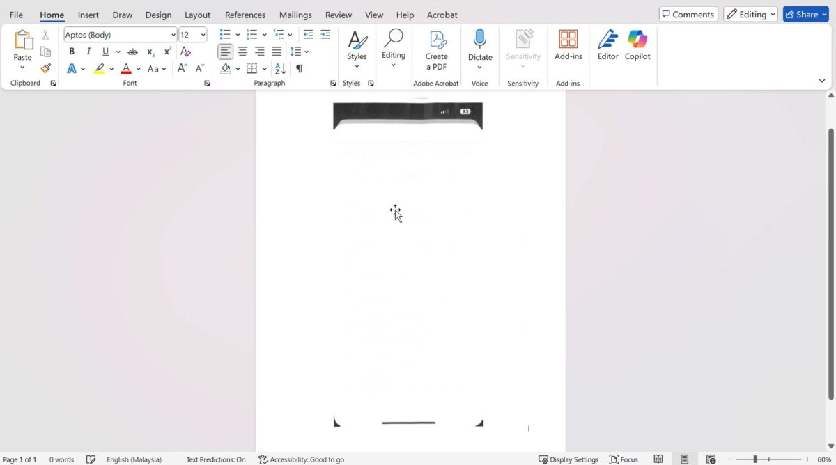 STEP 5 – After performing the scan on the machine, copying the scanned PDF document into Word will allow the entire sentences to be copied correctly, as shown in the screenshot below.