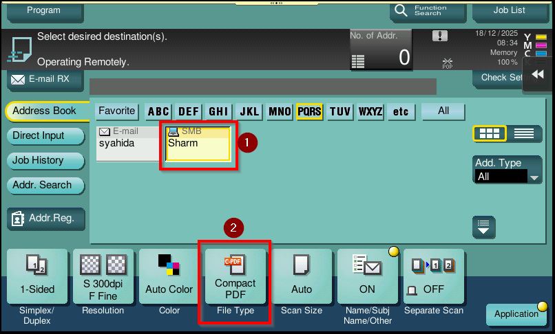 STEP 1 – On the Konica Minolta machine control panel, click on the [Menu] button then select [Scan].