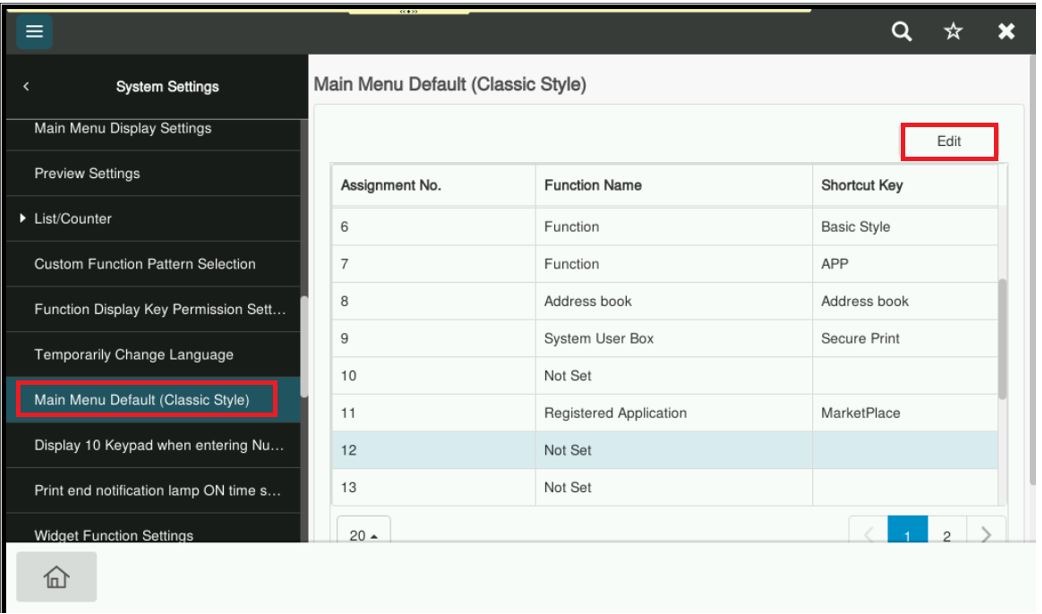 STEP 4 – Select [Main Menu Default (Classic Style)], Click on the Function Name that showing [Not Set], press Edit.