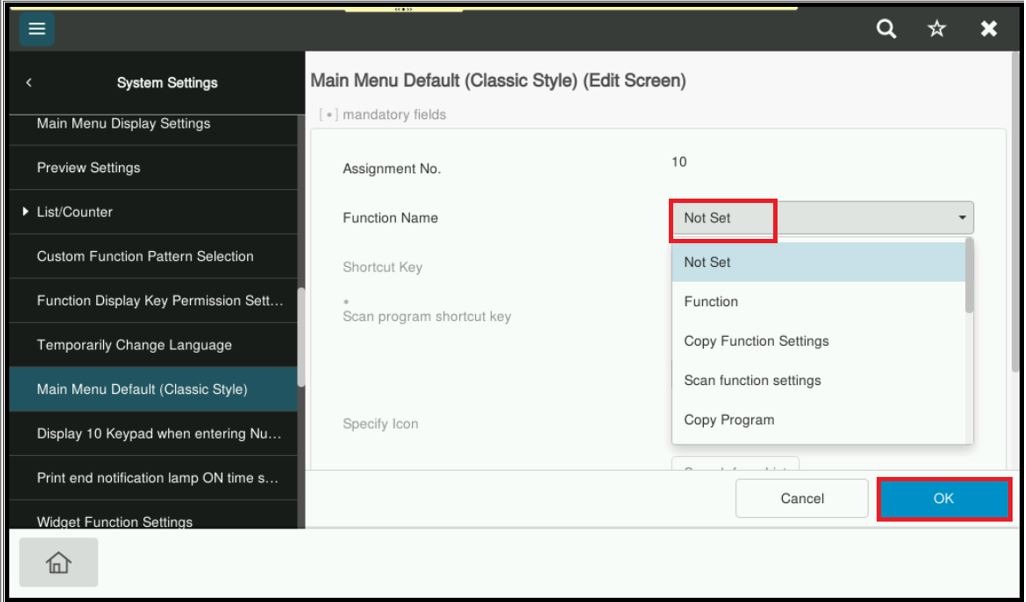 STEP 5 – Click on [Not Set], select the function to assign to the selected key, then tap [OK].