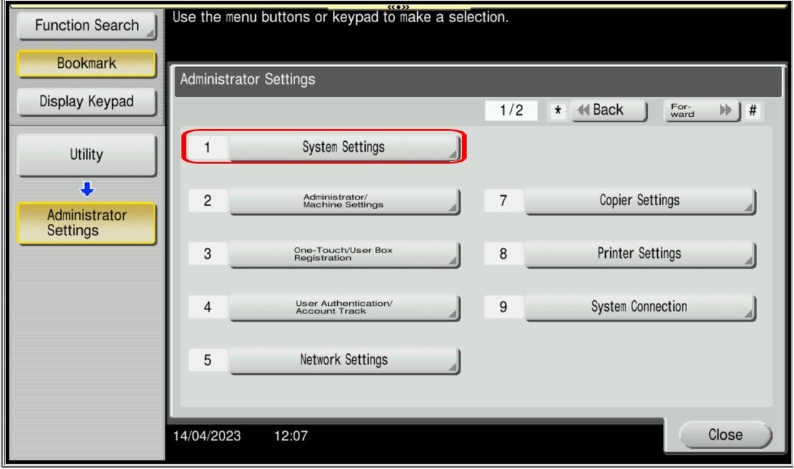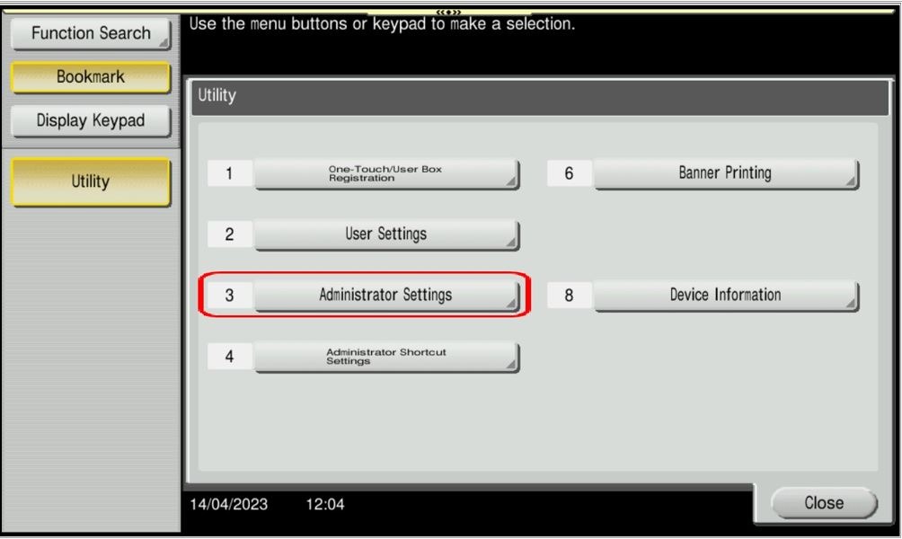 STEP 2 – Select [Administrator Settings], and key in the Administrator password accordingly.