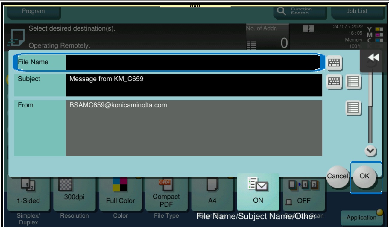 STEP 3 – Change the scan file name accordingly, then select [OK] and start scan.