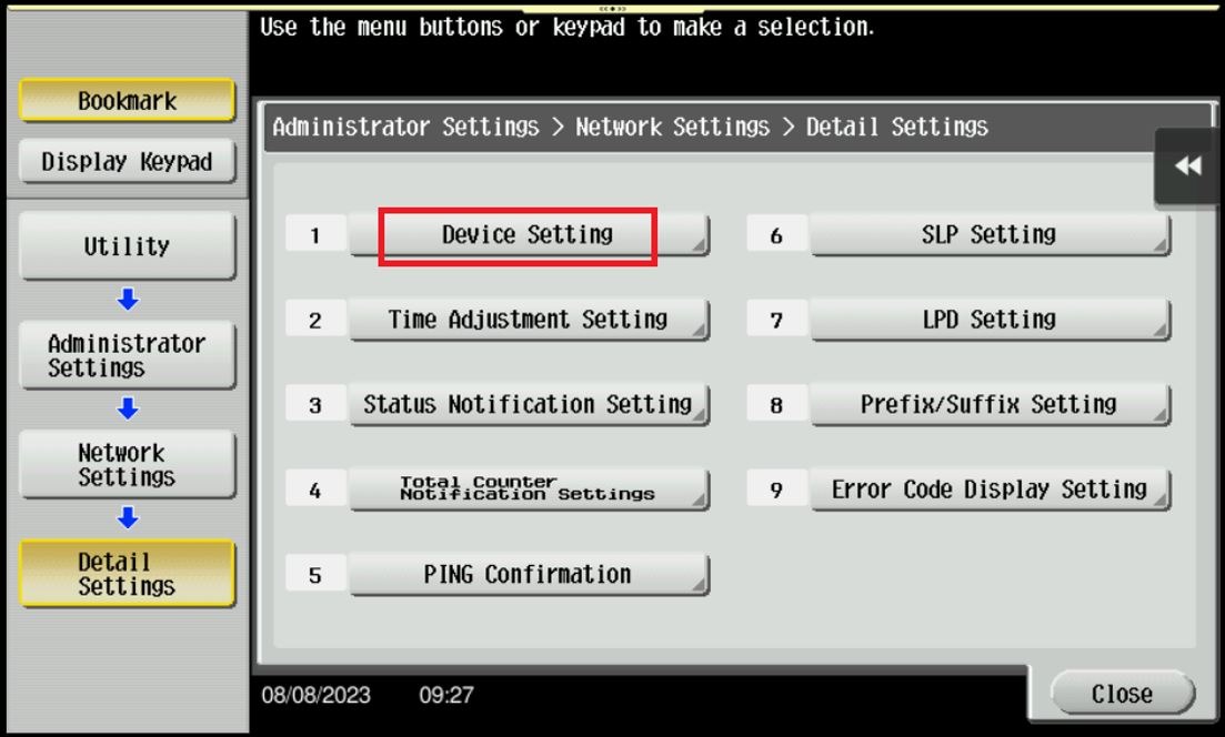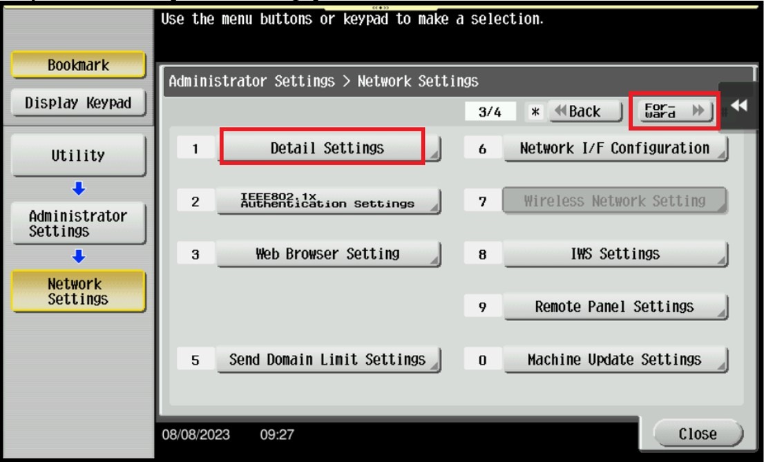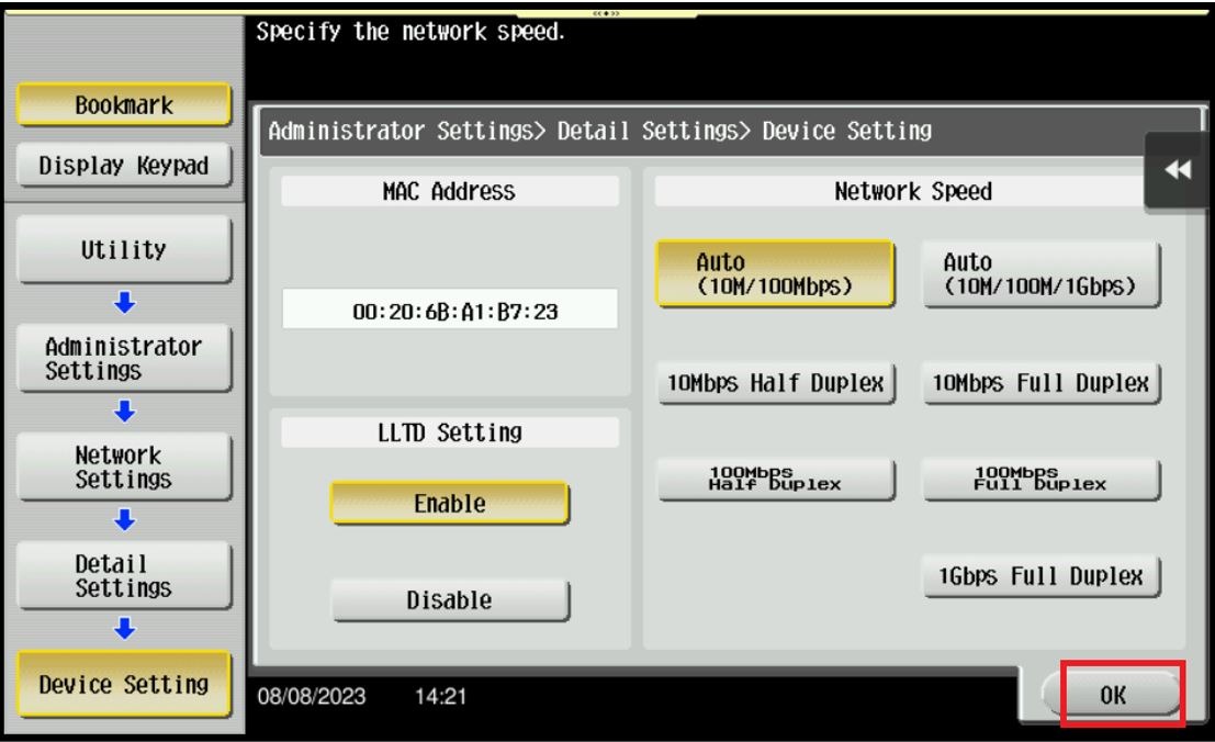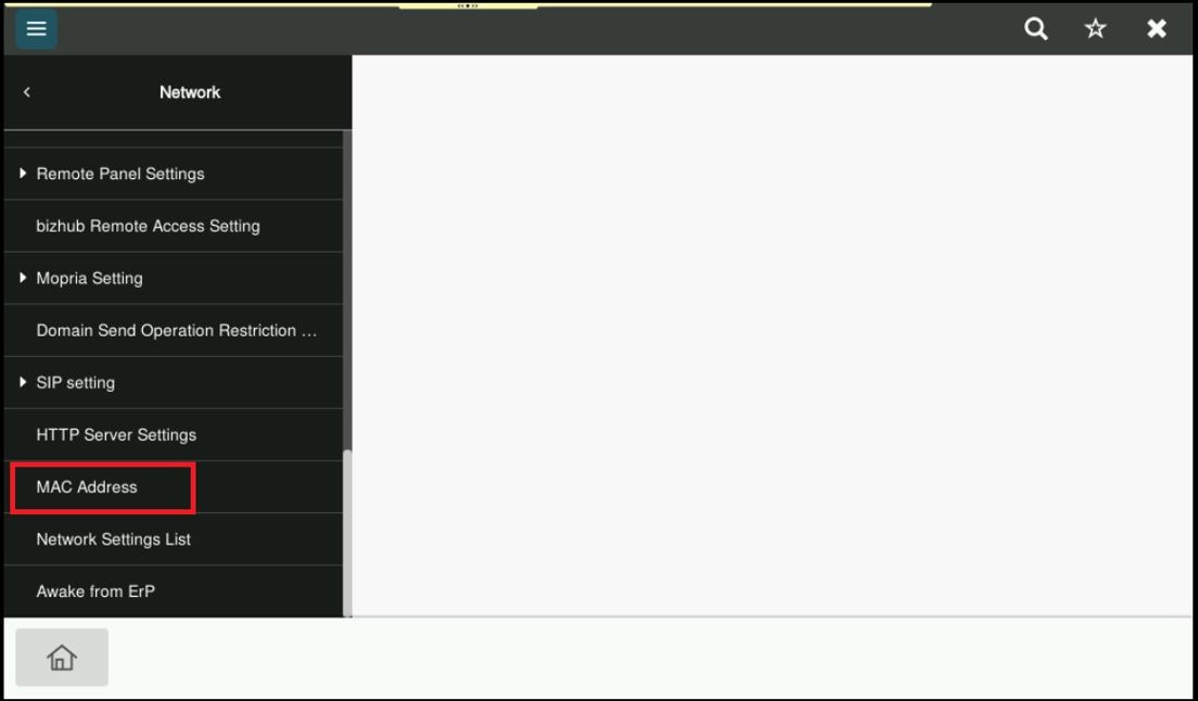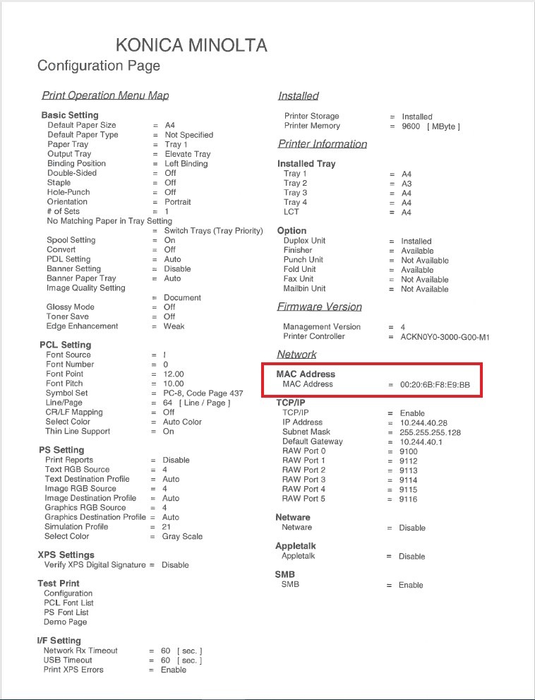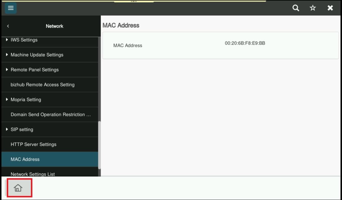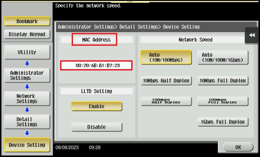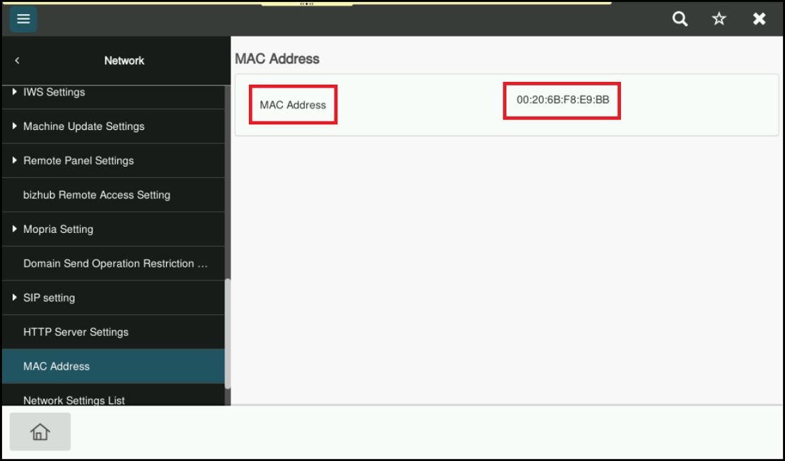 Guide on how to get MAC Address from the Konica Minolta Machine.