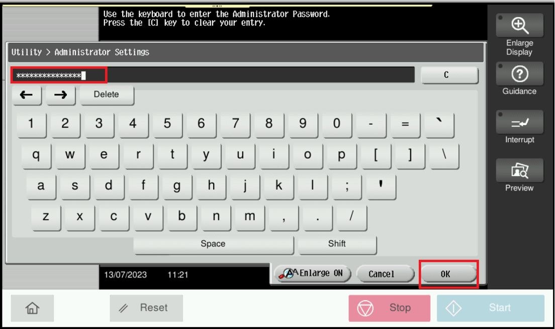 STEP 2 – Select [Administrator Settings], and key in the Administrator password accordingly.