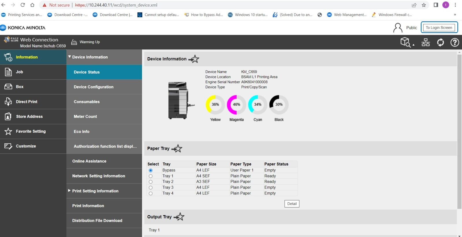 STEP 2 – Go to any browser of the PC, type in the Machine IP Address and enter. It will show the web connection of the Machine. Select [To Login Screen] to logout from the public.