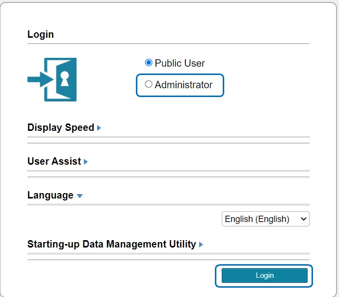 STEP 3 – Select [Administrator], and type in admin password.