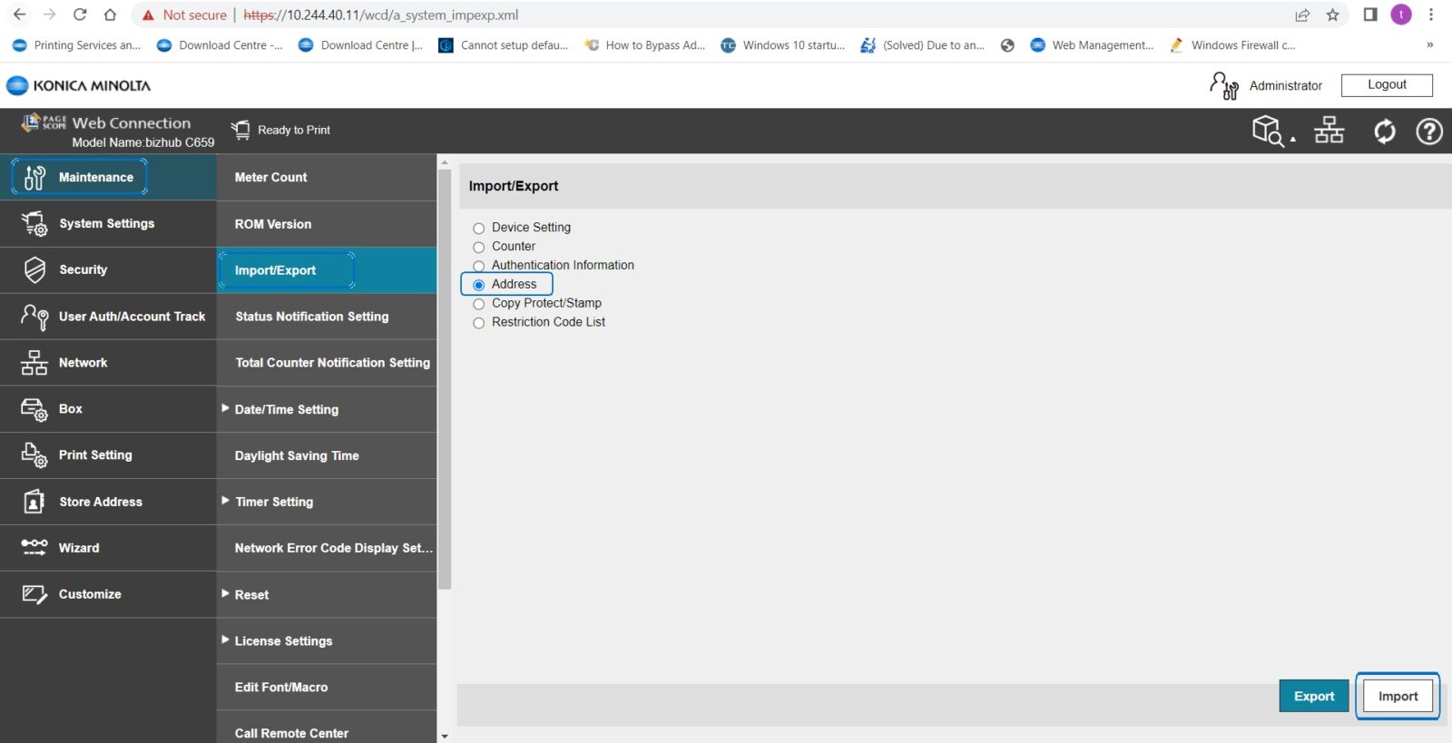 Guide on how to import address book to the Machine using Web Connection.