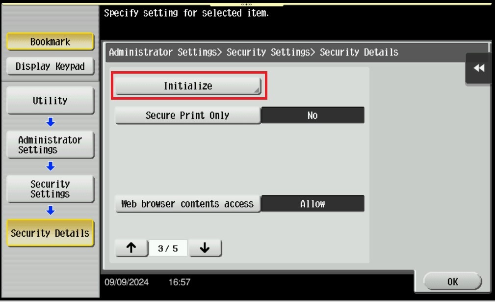 STEP 7 – Click the down arrow to page 3, and select [Initialize].
