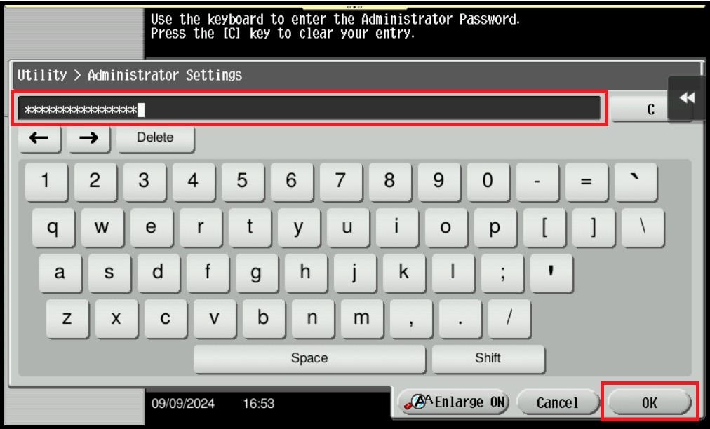 STEP 3 – Key in the default administrator password and click [OK] button.