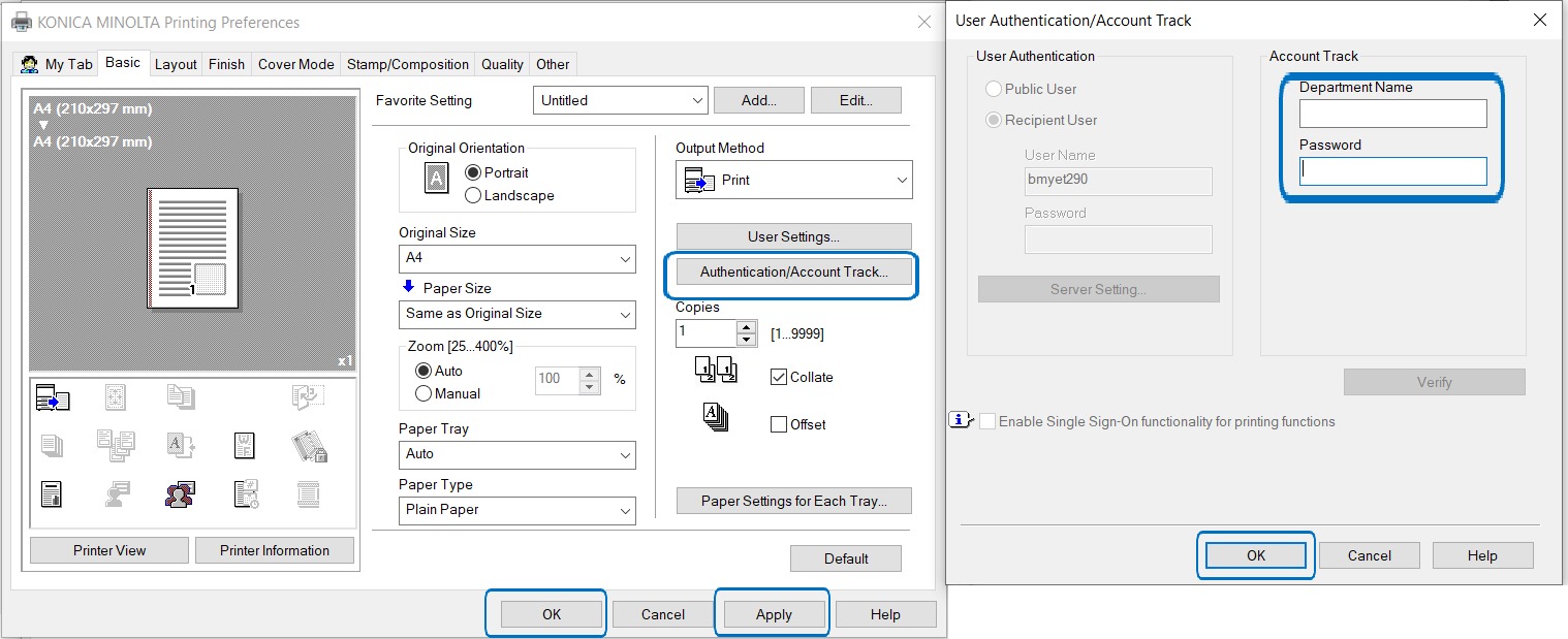 Guide on how to Key-in the User Authentication or Account Track details On the Printer Driver for Windows Operating System.
