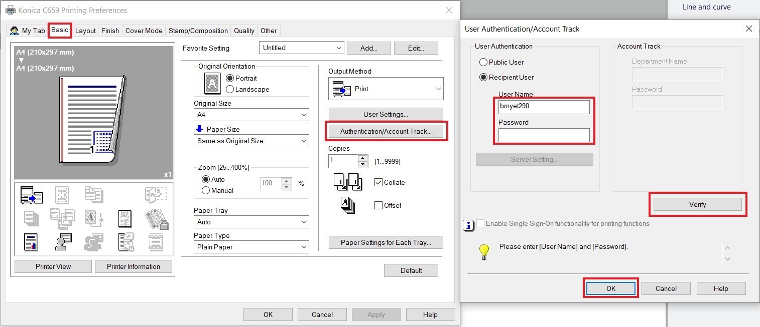 How to Key-in User Authentication/Account Track on Universal Printer Driver for Windows OS