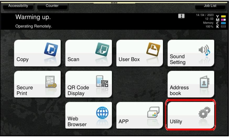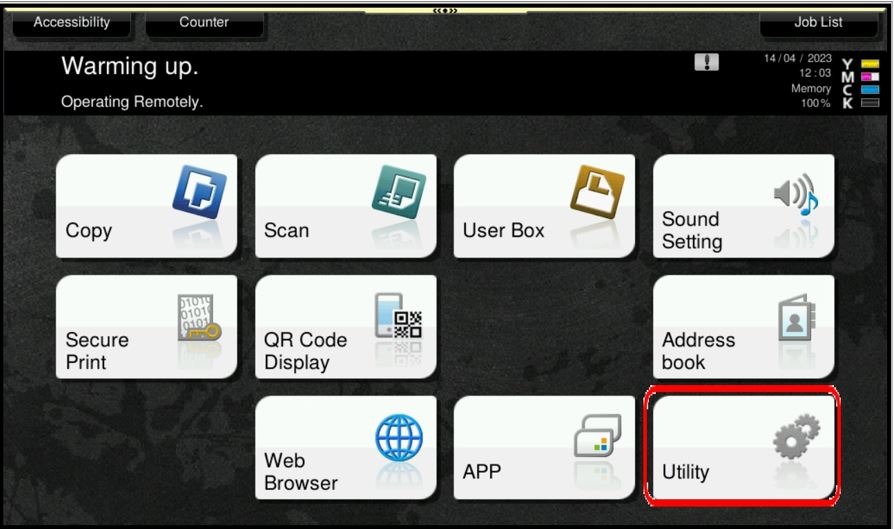 STEP 1 – On the Main Menu, select [Utility].