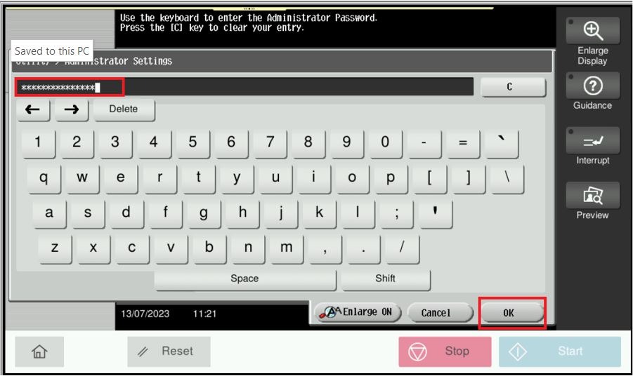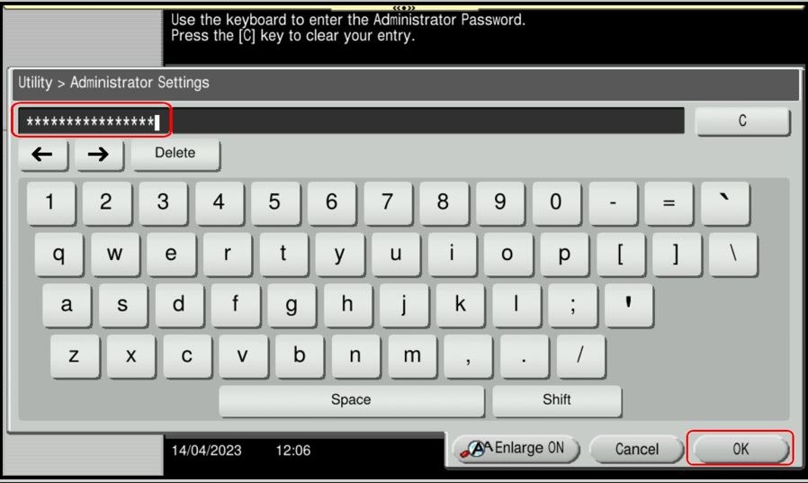 STEP 3 – Key in Admin Password and select [OK] to login.