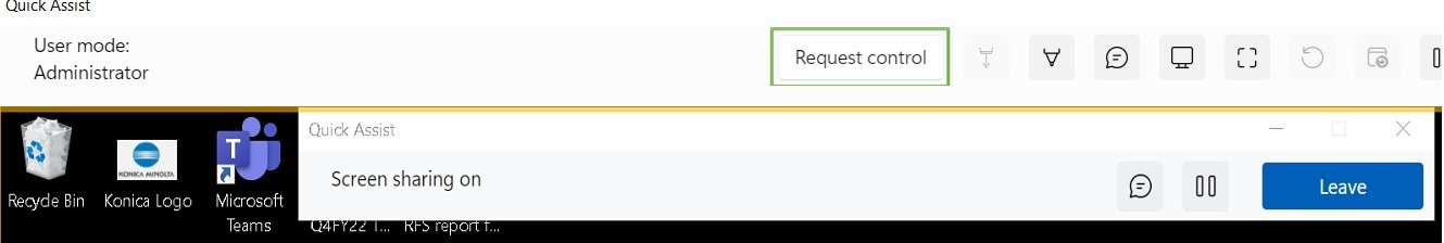 STEP 6 – Once remote in, the support need to click on request control and guide user to select Allow to grant the access so that the support will be able to control the user computer to do the remote session.