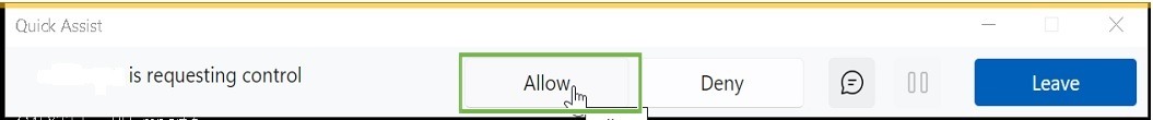 STEP 2 – Quick Assist interface as below.