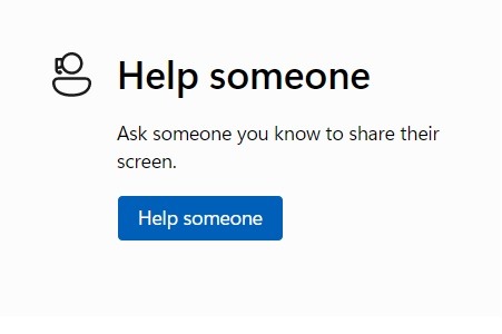 STEP 3 – The support who need to remote in for remote session troubleshooting, select Help someone.