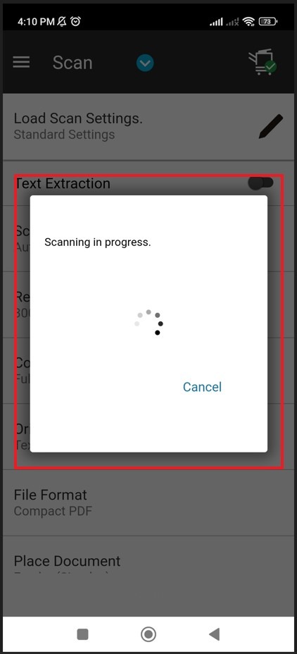 STEP 5 – The machine will start scanning the paper, and the mobile print will prompt scanning message and click on [Save] to save on [My Document]. If want to move the scan folder to phone storage, kindly proceed to next section.