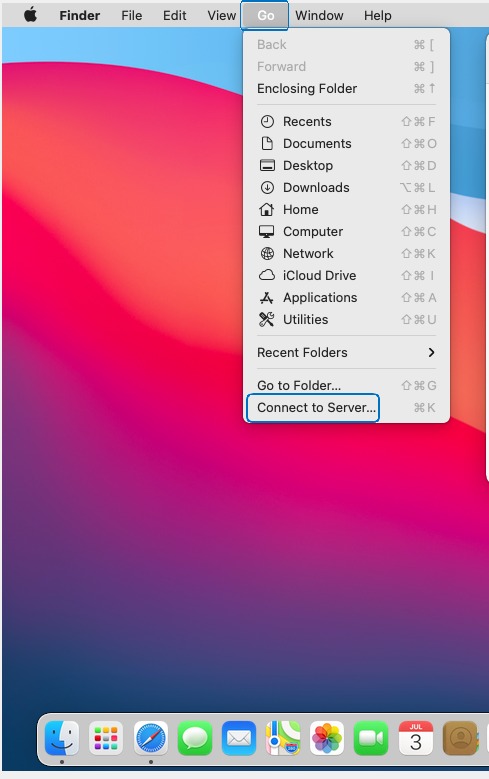 STEP 2: Create a new shortcut on the Home Folder by click on the Go and select Connect to Server.