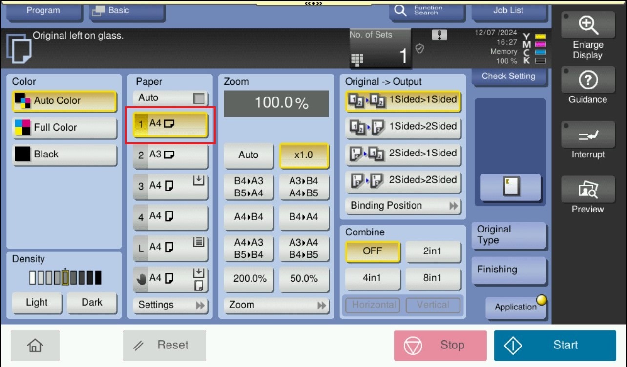 STEP 4 – After Adjust, click on [Close] to close the setting and click on [Start] to copy the original document into booklet format output.