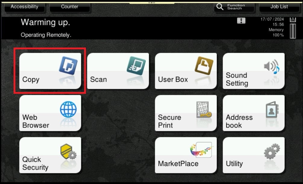 STEP 1 – On the Main Menu Screen, select [Copy].