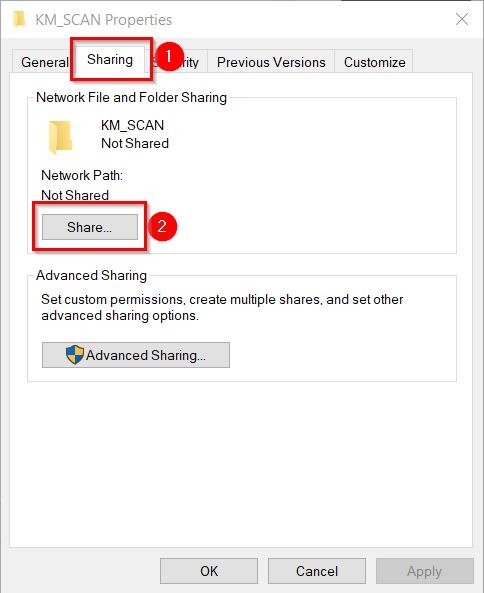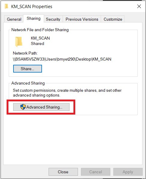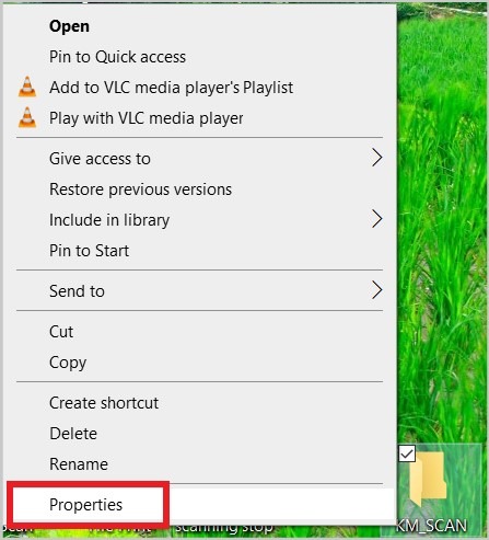- Right click on the [KM_SCAN] folder and select [Properties].