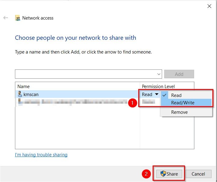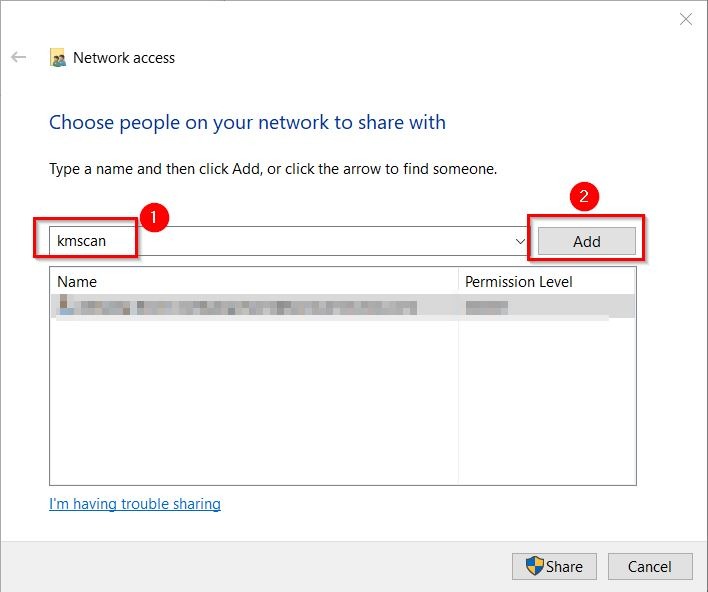STEP 2 – Share the scan folder using the dummy account.