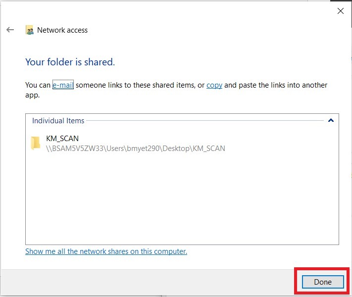 - File Path: KM_SCAN (As what we create the scan folder at the very first step)