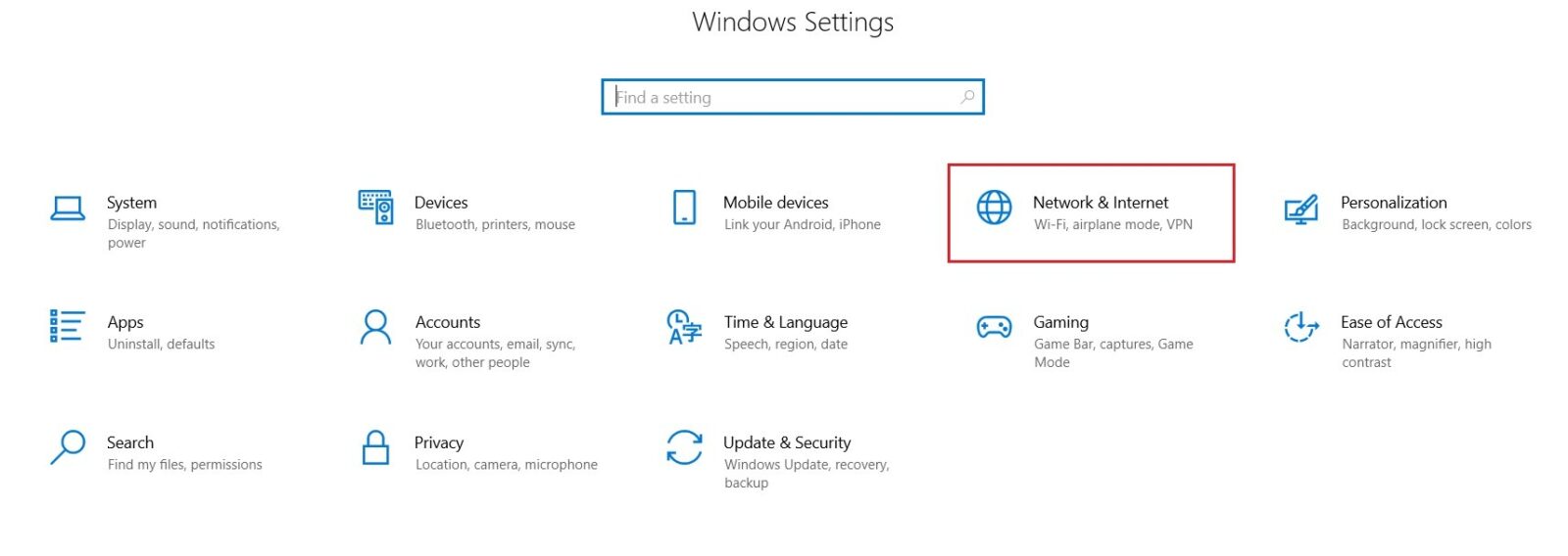 - Next we need to allow for Public Folder Sharing, click on windows [Start] button and select [Settings].