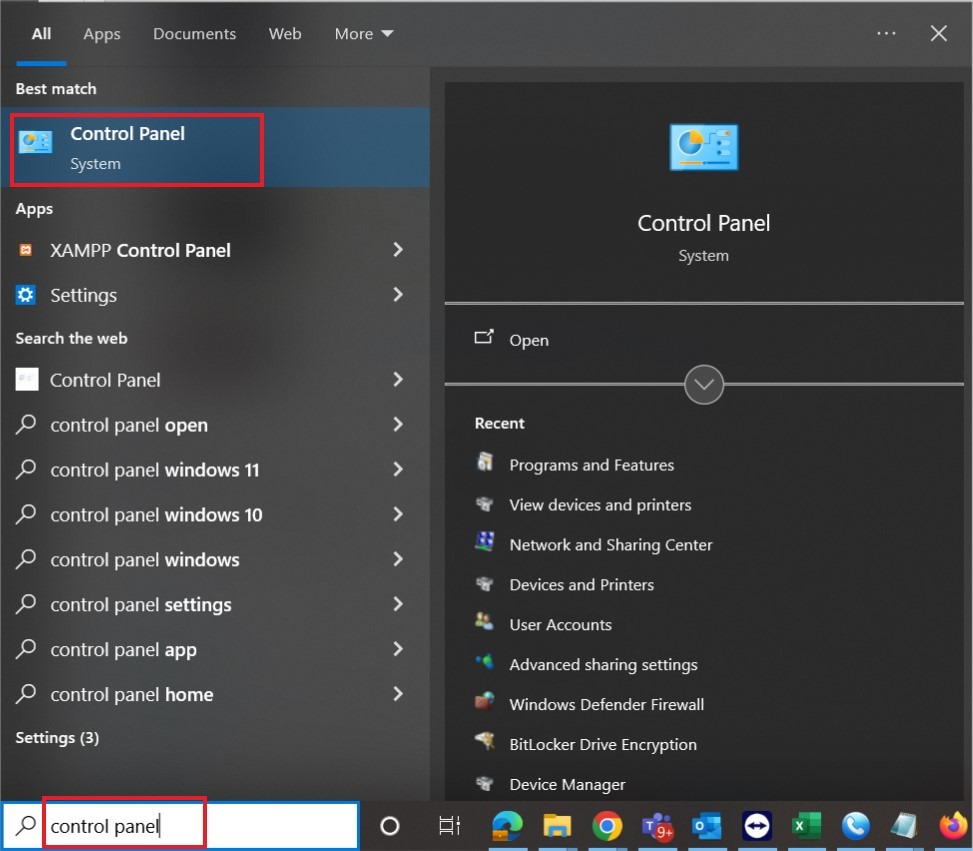 - Open [Control Panel] by typing the control panel on the window search bar.