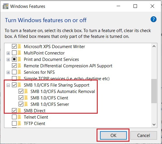 STEP 3 – Allow the SMB Version 1.0 if you’re using Window 10 or 11