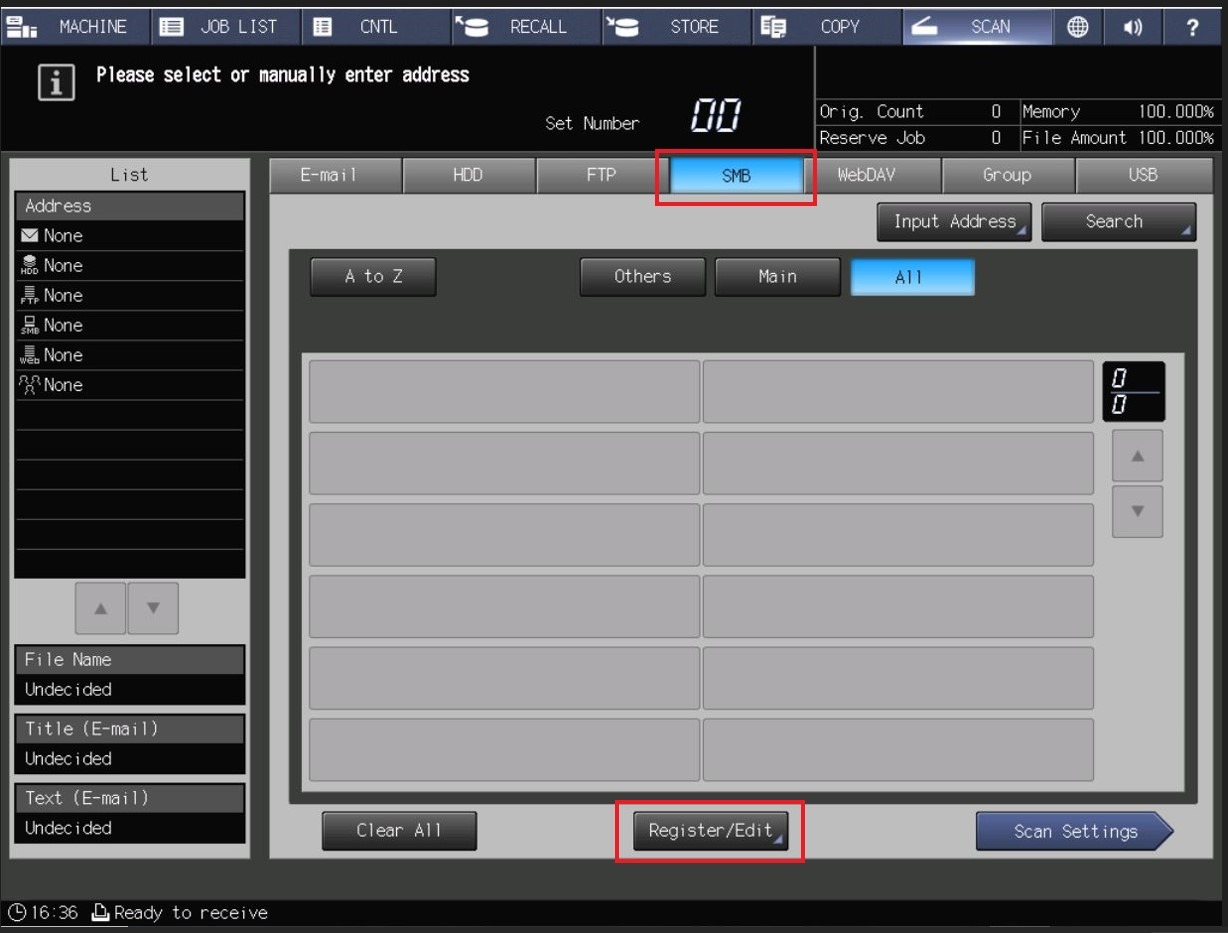 - Choose [SMB] – [Register/Edit].