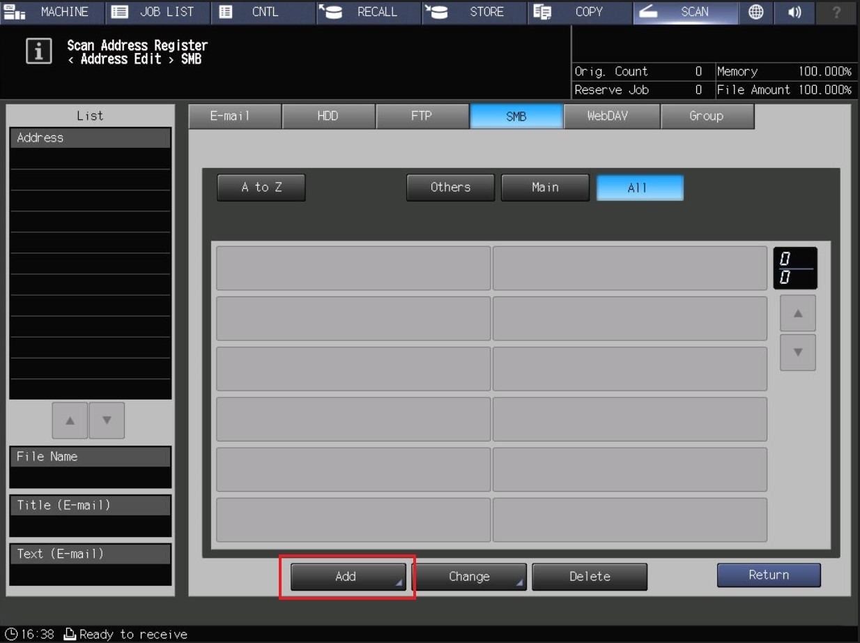 STEP 4 – Register the SMB settings on the Konica Minolta Printing Production machine.