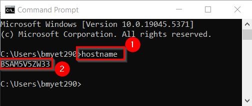 **Step below show on how to obtain Hostname in Command Prompt for PC. Open the Command Prompt, type ‘hostname’ and check for the name.
