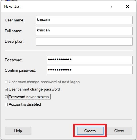 - Create a dummy account on the Computer Management.